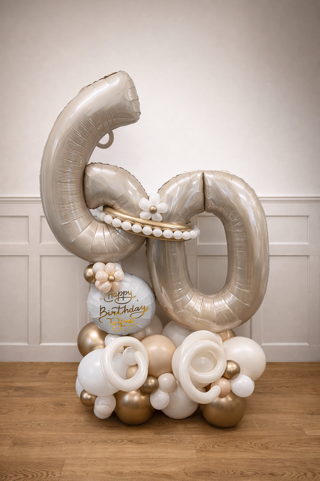 Its called an Elegance arrangement for a reason. This piece of Balloon decor has everything you could possibly want. Numbers, beading, flowers and more...
