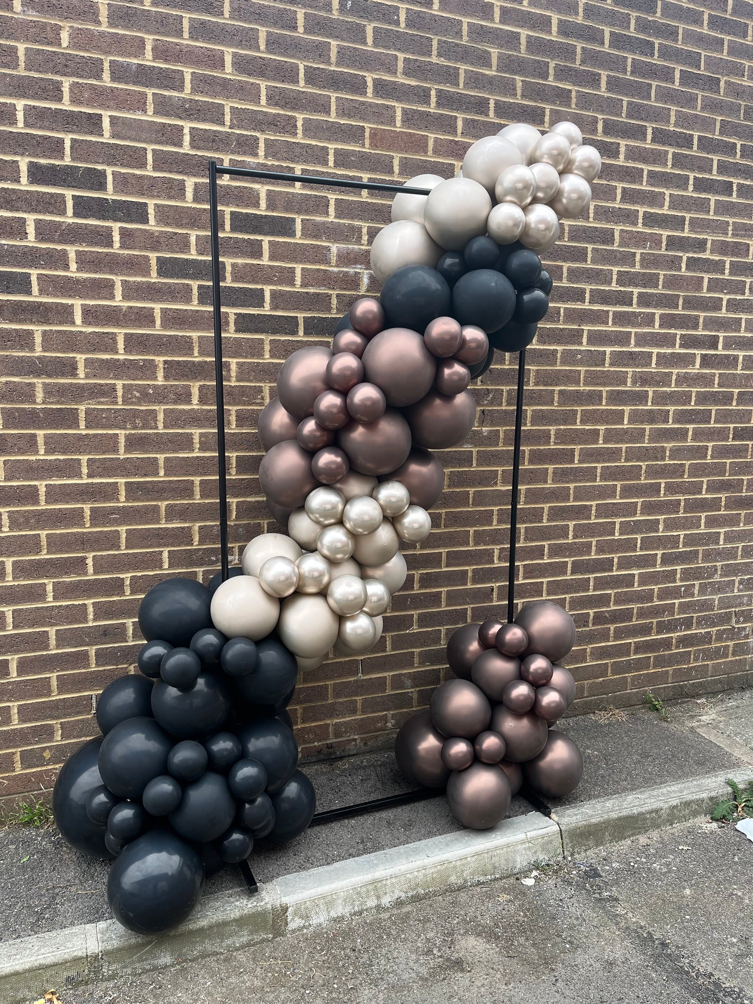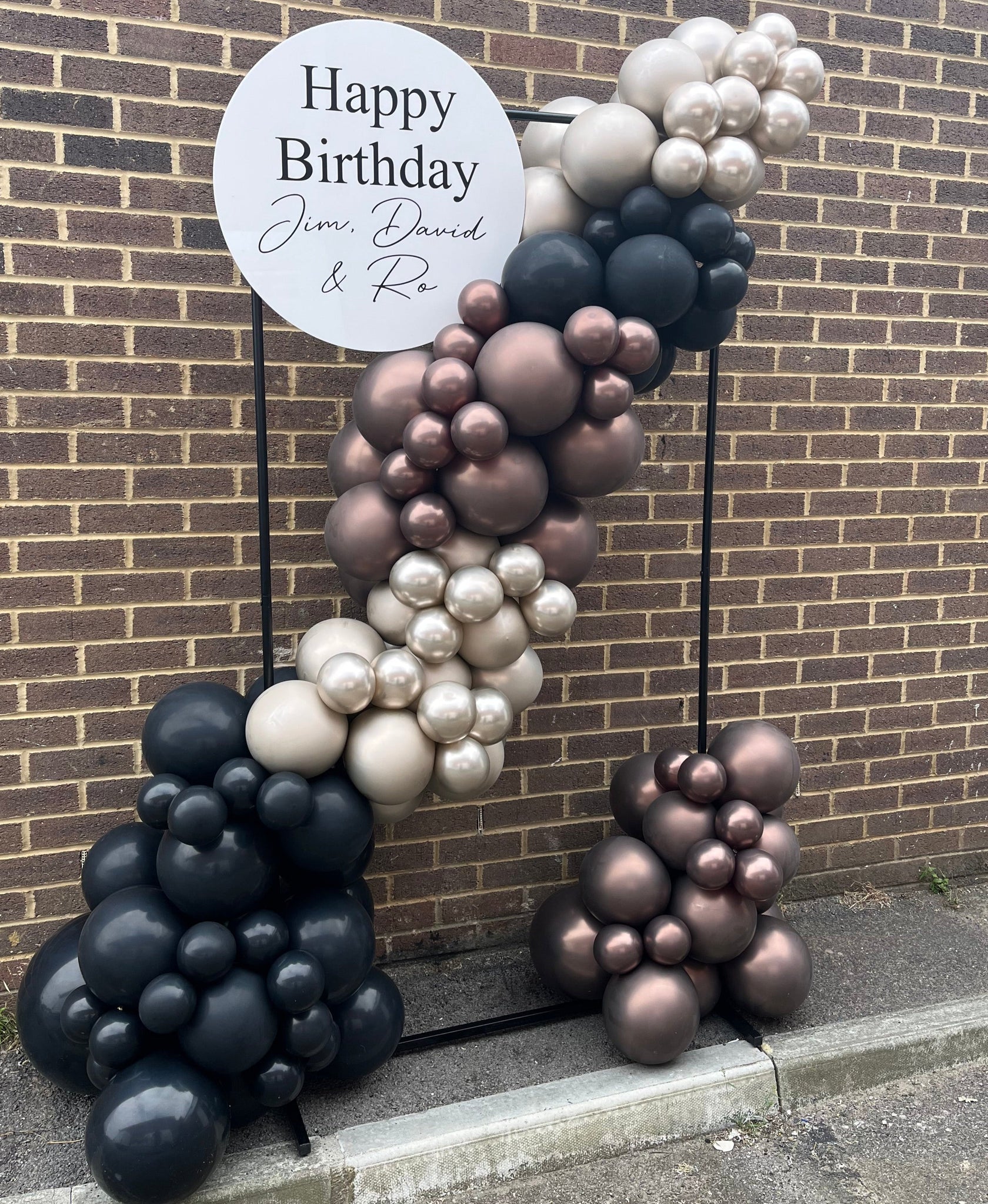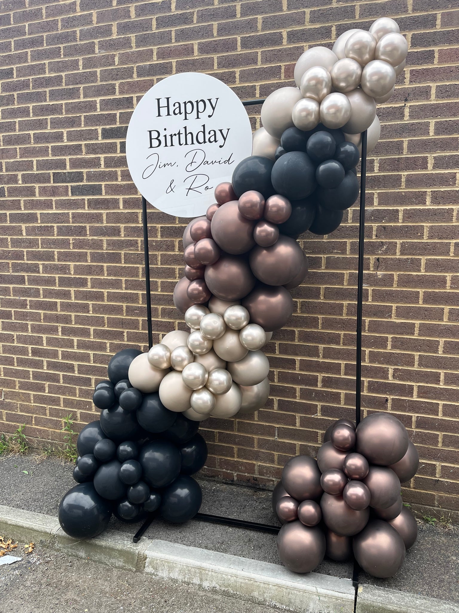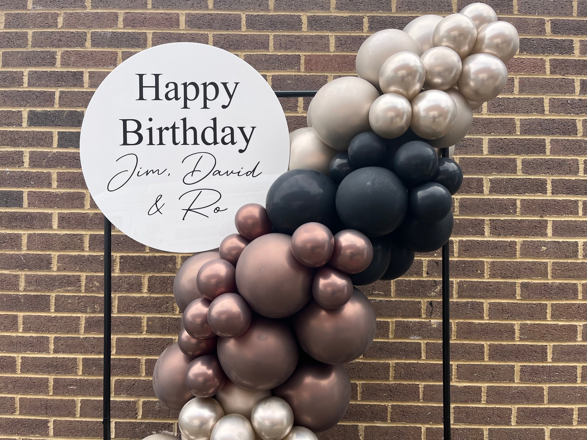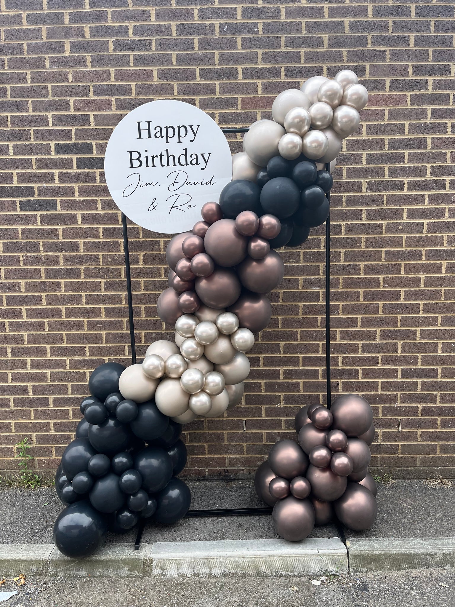 Rectangular metal free standing frame with a Balloon spill, and a personalised Sign, perfect as a backdrop for photos at any event. Any colour theme and any wording. Approx 1.8m Tall. Framework & Sign on Hire - Deposit Required. Additional Delivery & Set-Up charge may apply.